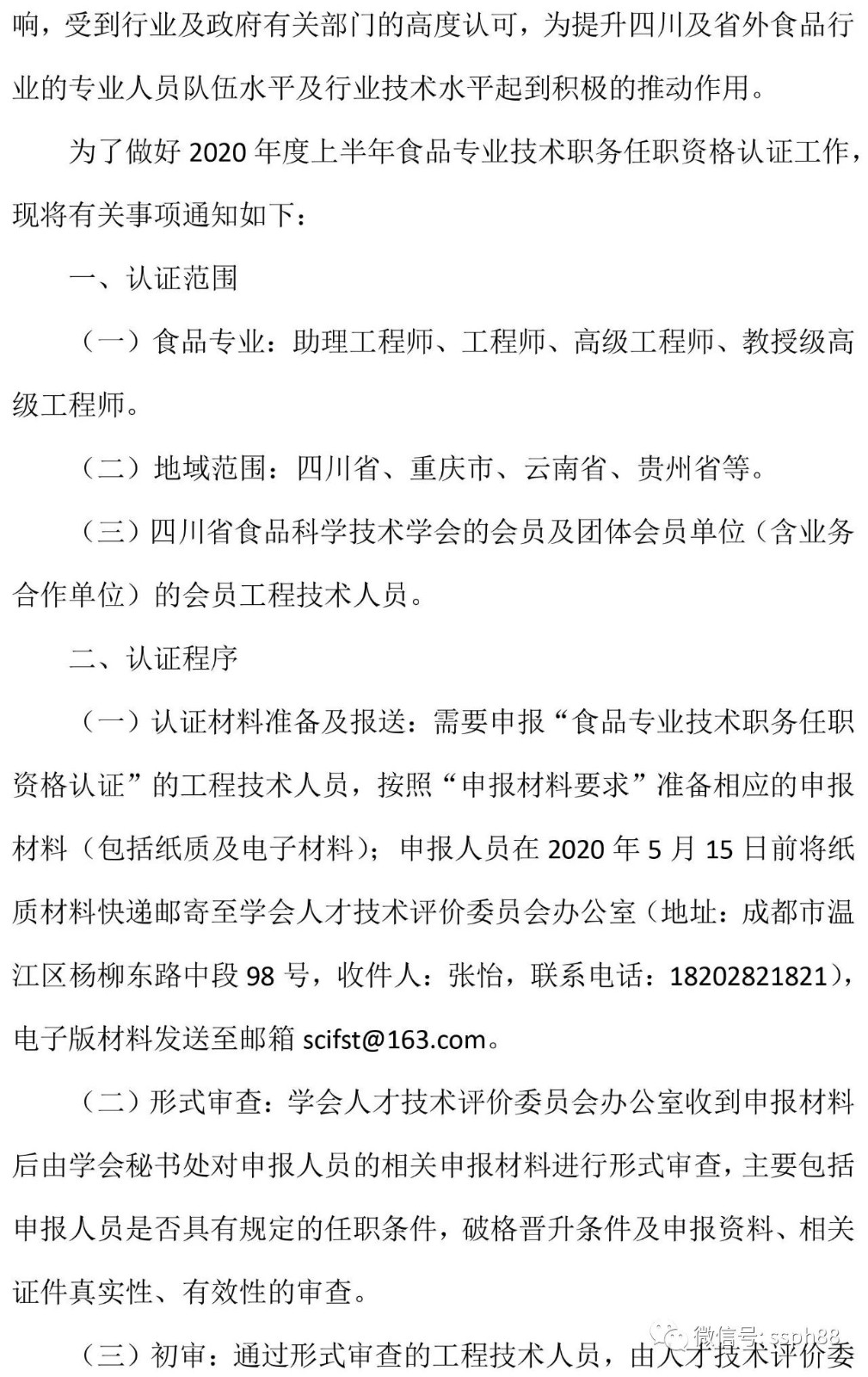 关于开展2020年度上半年食品专业技术职务资格任职资格认证的通知